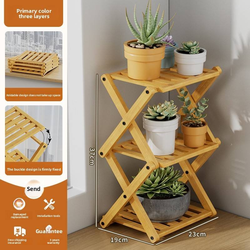 Folding Bamboo Flower Stand Balcony Storage Rack